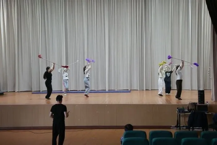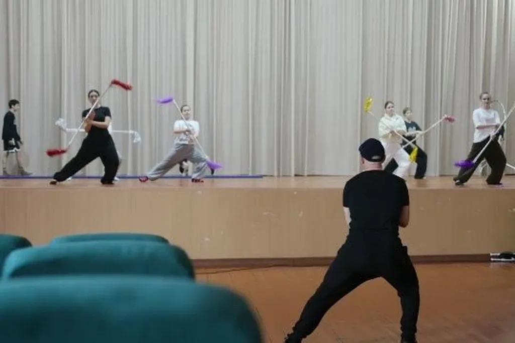 Мастер помог юным артистам поработать над номером с тростями. Результат превзошел ожидания: за одно занятие стал заметен серьезный прогресс. Девочки впитывали пластику, ритм и энергетику знаменитого артиста.