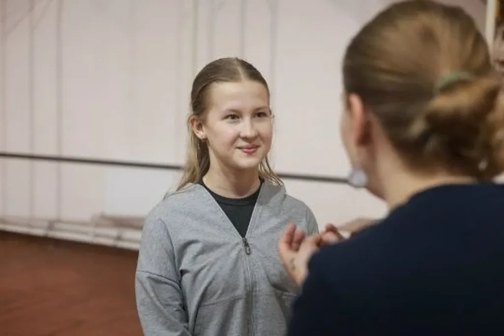 С наставником-режиссером участники разбирали причины внутреннего напряжения при зрительном контакте, а также учились принимать комплименты и выдерживать взгляды. Упражнения были направлены на закрепление навыка уверенного поведения на сцене и в жизни.